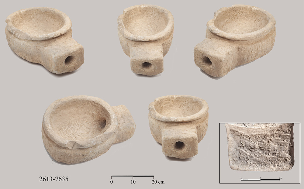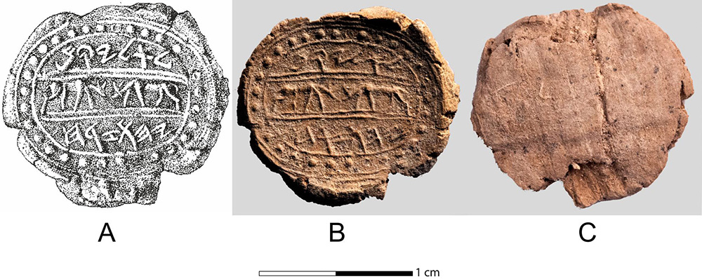![Fig. 17. Clay bulla bearing the Hebrew inscription l’lyqm yhwzrḥ (belonging to Eliakim [son of] Yehozaraḥ) 1, technical drawing; 2, front; 3, back with a papyrus impression. The middle register is decorated with two does facing one another. Two identical bullae from the Level III Assyrian destruction of 701 BCE were found (drawing by A. Yardeni;, photographs by T. Rogovski).](jpg/hasel_online_fig17-150x150.jpg)