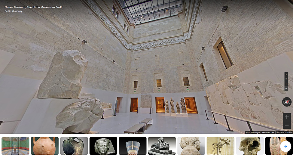 Fig. 1. Screenshot of Google Street View virtual tour of the Neues Museum, Berlin, on the Google Arts & Culture app. (Neues Museum n.d.; © 2020 Google; courtesy Neues Museum).