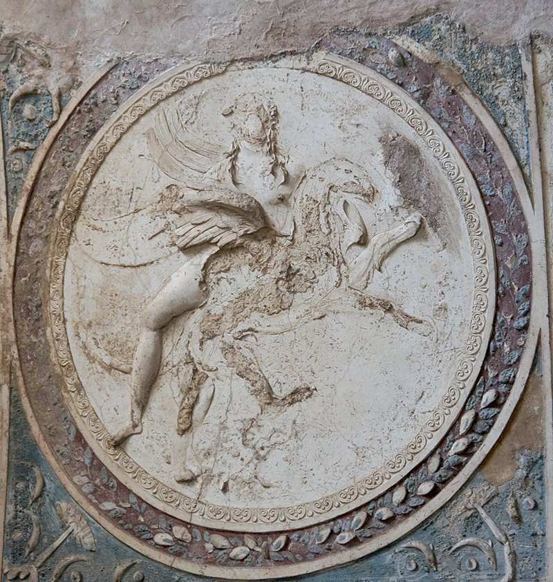 Baths played an essential role in the formation of the ideal Roman male. As a locus of demonstrating one’s belonging to the Roman citizenry through a collective act of cultus, in the face of public nudity and against the threats of mollifying luxury and superstitious beliefs, baths intensified the negotiation regarding the norms of masculinity. The decoration of the tepidarium of the Forum Baths in Pompeii can be read in light of these tensions. It presents two sets of naked male figures from different eras: burly telamon statues from a republican phase of the baths and stucco reliefs of sexually attractive youths from the last decade before Pompeii’s destruction in 79 CE. In this study, I attempt to look at the decoration from the point of view of the Roman bathers, and I contextualize the decoration both archaeologically and iconographically to determine the frames of its reception. I analyze how Roman masculinity was constructed in the process of identification with the normative ideal through the images. From this perspective, two main tensions emerge: one between self-control and the fertile force of the irrational embodied by the telamones, another between homoerotic desirability and heroism represented by the stuccoes. The bathers stood in the midst of these tensions.