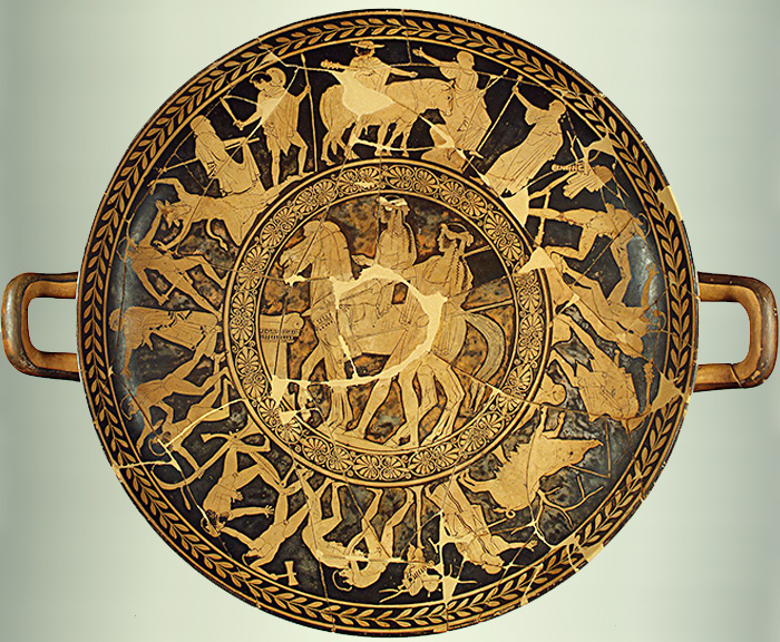 This article discusses a distinctive class of Athenian figure-decorated vases consisting of a few black-figure and red-figure cups and some phialai that are dated to the sixth and fifth centuries BCE. All are large, and some are huge, with diameters varying between about 35 and 56 cm. After tracking the shift in the distribution of these vessels from the late sixth century on, from Greek contexts to a concentration in southern Etruria, the article examines several case studies based on reconstructed material assemblages from Etruscan sanctuaries and graves in order to better understand the part played by the purchasers in the local reception and use of these monumental Athenian vases. I attempt to go beyond earlier explanations that see these objects as exchange gifts reflecting the prestige of the aristocratic owners and to demonstrate how this distinctive class of pottery responded to a variety of indigenous needs, practices, and interpretations.