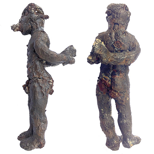 Two views of the lead effigy of Theophrastos, early fourth century BCE, figurine ht. 10.2 cm, Vitsi necropolis, Paros. Paros Archaeological Museum B 5984, excav. 1983.