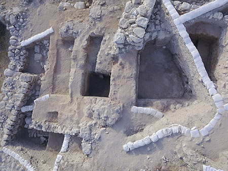 Aerial photograph of the MB IIC mudbrick fortress in Area BB (white sandbags secure the balks).