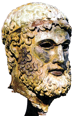 Approximately 20 fragments of bronze statuary were recovered in the 1970s from a wreck off the coast of Calabria near the village of Porticello, but only one of these pieces, the long-bearded head of an elderly man (P1), has attracted scholarly attention because of its pronounced realism. A second male head (P2) was smuggled abroad almost immediately upon recovery. It had remained unknown until it was returned to Italy from Basel, Switzerland, in 1993; but after the first announcements, it received scant official mention, and doubts have even been expressed about its connection with the other bronzes from the Porticello wreck. It is here argued that such connection can be proved on the basis of stylistic and technical evidence, which should place both heads ca. 430–420 B.C.E. In addition, the idealized features of the head from Basel (P2) confirm that even the previously known “philosopher” from Porticello (P1) does not portray a known personage, but rather a fictional character such as a mythological being or an epic hero. The bronzes from the wreck, which include some athletic nude males, should be examined together before a proper assessment is attempted.