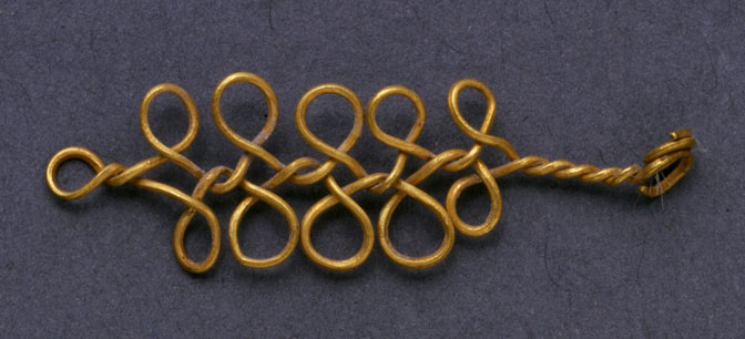 Fertility and abundance are important themes of ancient Mesopotamian texts and images. The goddess Inanna and her consort Dumuzi personify these ideas in texts of the second millennium B.C.E. Excavated by Leonard Woolley in the 1920s, the Royal Cemetery at Ur dates to the mid third millennium B.C.E. Among the tombs, that of Queen Puabi yielded many ornaments of gold, carnelian, and lapis. Some of the pendants realistically depict identifiable animals. Others are more stylized depictions of clusters of apples, dates, and date inflorescences. Apples and dates are both associated with the goddess Inanna, who is associated with love and fertility. Twisted wire pendants in the same group of objects are not so readily identified. I propose here that the twisted wire pendants in the Puabi assemblage may literally represent rope, symbolically reference sheep, and narratively evoke the flocks of the shepherd Dumuzi. Pairing symbols of Inanna and Dumuzi evokes life in a place of death. This article considers and rejects the following identifications for the wire pendants: stylized palmette, pinnate leaf, grape (and implicitly any other fruit cluster), water, road, canal, and snake.