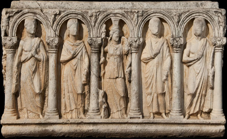 There has recently been interest in understanding the meaning of Roman metropolitan sarcophagi, particularly those decorated with mythological subject matter. Most of the previous studies have focused on sarcophagi produced in Rome and Athens. This article aims to address a specific lacuna in the scholarship by focusing on the meaning of a group of sarcophagi from Aphrodisias in Caria. These sarcophagi are decorated in relief with a columnar facade, an arcaded entablature, and human figures standing in the intercolumniations. Drawing evidence from funerary inscriptions and archaeological context, the first part of the article establishes the chronology of these sarcophagi and the social classes that commissioned them. The second part explains and contextualizes the architectural form and the “types” of human figures represented on the sarcophagus chests. The final part takes into consideration the iconography and offers explanations for the unique relief decoration by situating the sarcophagi within the social context of Asia Minor in general and of the city of Aphrodisias in particular.