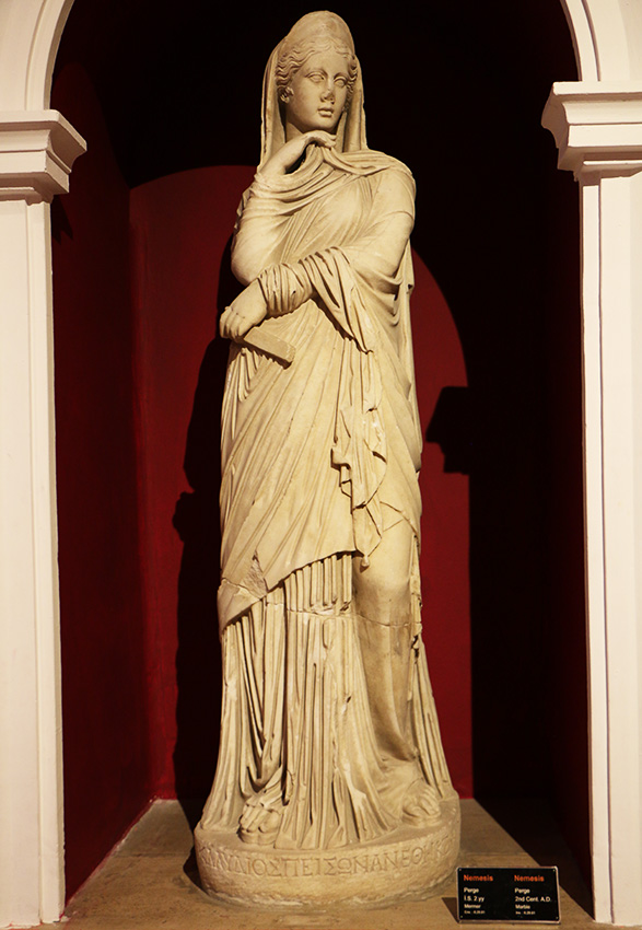 A group of marble statues, all bearing the dedication of Klaudios Peisōn, were found together in 1981 in the South Baths of Perge. They appear datable to the principate of Antoninus Pius, when the baths were enlarged. To date, however, these statues have not been examined as a group, and little attention has been paid to the role of their donor. The name Klaudios Peisōn indicates membership in a prominent family of Sagalassos; his generosity to another city suggests that this man owned property near or conducted business in Perge. His euergetism here is more modest than that of Perge’s own great families, but it shows Peisōn’s desire to win favor with the people and local officials. Technical evidence indicates that at least six of the statues were not new when Peisōn donated them; some of them had been recut to receive his dedicatory inscription. They were, however, carefully chosen by someone, both for their connections with local cult and for their aesthetic appeal. Peisōn’s euergetism consisted in preserving and reinstalling a group of statues from some other venue.