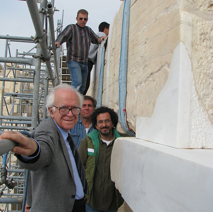 On 27 July 2016, Professor Emeritus Charalambos Bouras passed away, leaving behind an incomparable legacy of important scholarly contributions. His impressive output in the history of ancient and medieval architecture of Greece—his field of specialization and teaching at the Polytechnic School of the Aristotle University of Thessaloniki (1966–1974) and the National Technical University of Athens (1974–2000)—is equaled by his formative role in the scientific field of preservation and restoration of architectural monuments. As a practitioner and teacher of historic preservation, Bouras is credited with having shaped the generation of specialists active in architectural restoration in Greece today. It is not an exaggeration to state that around Bouras’ personality pivots an internationally radiant “school” of practitioners—all his students—currently active in the domain of architectural preservation and restoration. The empirical testing ground of this school is the exemplary restoration of the Athenian Acropolis monuments, which began in the 1970s and to which Bouras contributed first as a member and then as chair of the Committee for the Conservation of the Acropolis monuments (fig. 1).
