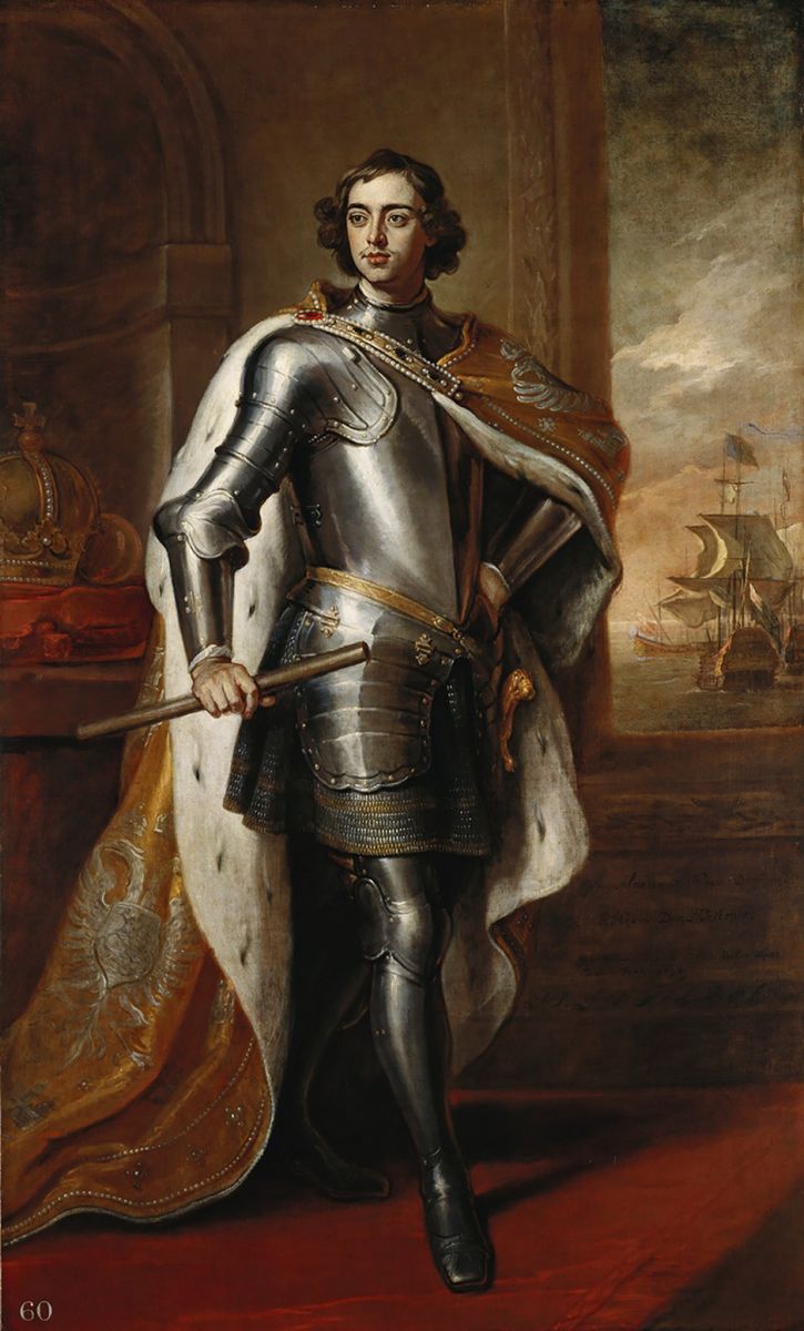 The second gallery, “The Siberian Collection of Peter the Great,” is dedicated to what archaeologists working in Russia, Ukraine, and surrounding countries term “Scythology,” or the study of the Scythians, along with a secondary focus on the Scythian animal art style. The gallery introduces visitors to the archaeological and historical concerns of 19th-century Russia under the direction and sponsorship of Czar Peter the Great (1672–1725), whose portrait is by far the most striking piece in the gallery (fig. 3). Peter, who ruled the Russian empire as czar and emperor from 1682 to 1725, commissioned scientific teams to travel the breadth of Siberia to seek out natural resources. These teams noted the substantial number of mounds across the steppe that stretched the extent of the territory of the Russian empire, which drew the attention of specialists and grave robbers alike. The recovery of items from these mounds led Peter to issue an edict that such objects should be sent to St. Petersburg, and that drawings should be made of everything found.5 The walls of the gallery are adorned with illustrations of the palaces of Czar Peter, as well as the kunstkamera (the Cabinet of Curiosities), where the recovered items found a home. A case standing in the center of the room running more than half its length displays some of the best-known examples of Eurasian Iron Age material culture, including the famous gold plaque of a coiled panther, an emblematic icon of the Scythian animal art style (fig. 4).