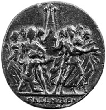 In this article, I consider the abduction of the Sabine women as pictured on Late Antique contorniates, which are special souvenir medallions that were given at games and entertainments in the circus. The subject, which appeared at that time exclusively on the contorniates, is set in the Circus Maximus next to the primae metae, the southeastern turning posts; it is a setting that implicates a theatrical reenactment of the narrative. This interpretation is supported by contemporary literary sources, which reveal that the plays, while popular in the second half of the fourth century C.E., were reviled by the Christian church and consequently were dropped from the repertoire of spectacula. As such, they do not appear on the second series of contorniates produced at the beginning of the fifth century C.E. Examination of the pictorial derivation of the Sabine contorniate types reveals changes in attitudes toward the Sabine tradition that evolved in the wake of the ascendancy of the church and the Christianization of the pagan aristocracy of Rome in the last decades of the fourth century. But the plays were frequently performed in the Circus Maximus until the interface of the fourth and fifth centuries C.E., and the changing sociopolitical patterns of Late Antique Rome contributed to their sustained popularity and the alarm of the church. Ironically, the pictorial survival in Roman art of the abduction of the Sabine women is due to nothing more than its popular and vulgarized performance as a play in late antiquity.