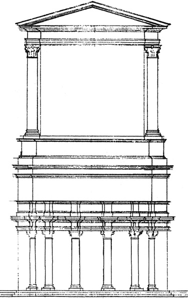 He also worked on ancient monuments and architectural displays based on Roman buildings. In 1929, he converted the octagonal hall at the northwest corner of the central block of the Baths of Diocletian into a planetarium. At Cyrene, from 1932 to 1934, he rebuilt part of the Propylaea, the formal entrance to the sanctuary of Apollo, and the Strategeion, a small, gabled, rectangular structure with a Doric entablature (217–23), work that “furnish[ed] visitors with an impression of the spaces and proportions of the buildings” (219). In his small Roman library at the Augustan Show (Mostra Augustea) of 1938, “one of the best demonstrations of the elevated influence of ancient models” (240), he based his design on two great public libraries: that in the Forum of Trajan and a smaller, private one in Hadrian’s villa (243). The original of his full-sized Roman dwelling in the same show (253–35, figs. 1–8) was a combination of the houses of the Surgeon and Sallust at Pompeii, and in one of his last major prewar projects at Ostia (227–31), he restored the facade of the theater (1938–1939).