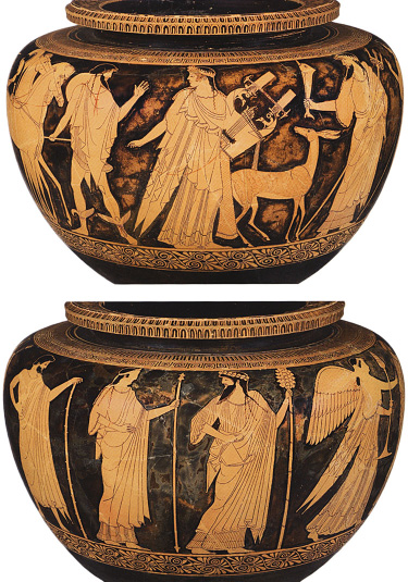 This large section is prefaced, appropriately enough, by the splendid dinos attributed to the Berlin Painter from the Antikenmuseum’s collection, which ostensibly depicts Zeus’ departure by chariot from Mount Olympus.