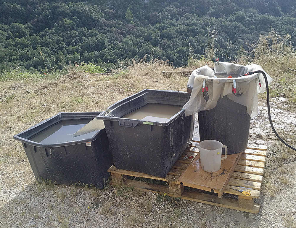 An example of archaeobotanical recovery equipment and materials: machine-assisted flotation setup at the Roman villa at Vacone in central Italy.